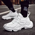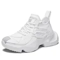 All Black Fashion Shoes 2019 Men Height Increasing Casual Shoes White Non-Slip Breathable Thick Soles Chunky High Top Sneakers