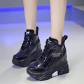Rimocy thick bottom chunky sneakers women white black patchwork high platform shoes woman casual autumn winter wedges footwear