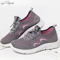 Mhysa 2019 Women's Shoes Casual Fashion Sneaker Flat Platform Flyknit Stretch Fabric Ladies Shoes New Mesh Lace-up Shoes T128