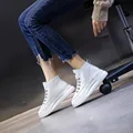 Best Offer SWONCO Genuine Leathe Ankle High Sneakers Shoes Woman Casual White Shoes 2020 Spring New Female Lea with Free Worldwide Shipping!