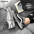 SWYIVY Canvas Sneakers Men Casual Shoes 2019 New Autumn Shoes Male Vulcanize Chunky Sneakers Black High Top Shoe Comfortable
