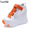 2019 Spring High Platform Boots 12CM High Heel Women Thick Sole Shoes Leather Wedge Sneakers Waterproof Breathable Casual Shoes