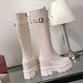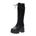 Women Long Sock Boots New Winter Lace-up Knee-High Boots Platform Chunky Shoes Woman 10CM Wedge Heels Motorcycle Boot High Heels