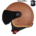 helmet motorcycle open Face Helmet can add removed mask Retro PU Leather Open Face Cruiser Scooter Moto Helmet kask
