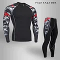 Camouflage Tracksuit Men rashgarda MMA Long sleevets T shirt Men's Compression suit Fitness shirt Thermal underwear slim joggers