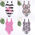 M&M 2019 New One Piece Swimsuit Flamingos Printed Women Summer White Black Backless Swimwear Sexy Bathing Beachwear Bodysuit