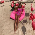 2019 Flamingos Print One Piece Swimsuit Women Sexy Swimwear Female High Waist Solid Color Deep V Summer Swim Suit Monokini XL