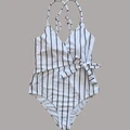 Best Price 2020 Sexy Stripes Swimwear Women Backless One piece Swimsuit Badpak Monokini Maillot femme Bikini M with Free Shipping Worldwide!