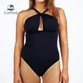 Best Offer CUPSHE Black Deep Feelings Cross One-piece Swimsuit Women Plain Cutout Halter Swimwear 2020 Beach S with FREE Worldwide Shipping!