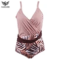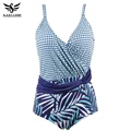 NAKIAEOI 2019 New One Piece Swimsuit Women Vintage Bathing Suits Plus Size Swimwear Beach Padded Print Polka Dot Swim Wear 4XL
