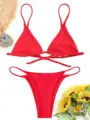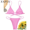 Best Offer ZAFUL Cami Bralette Thong String Bikini Set Low Waisted Spaghetti Straps Swimming Suit For Women Pu with Free Shipping Worldwide!