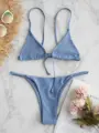 ZAFUL Mini Bikini Textured Ribbed Halter Micro Bikini Set Unlined Wire Free Swimsuit Women Swimwear Solid String Bathing Suit